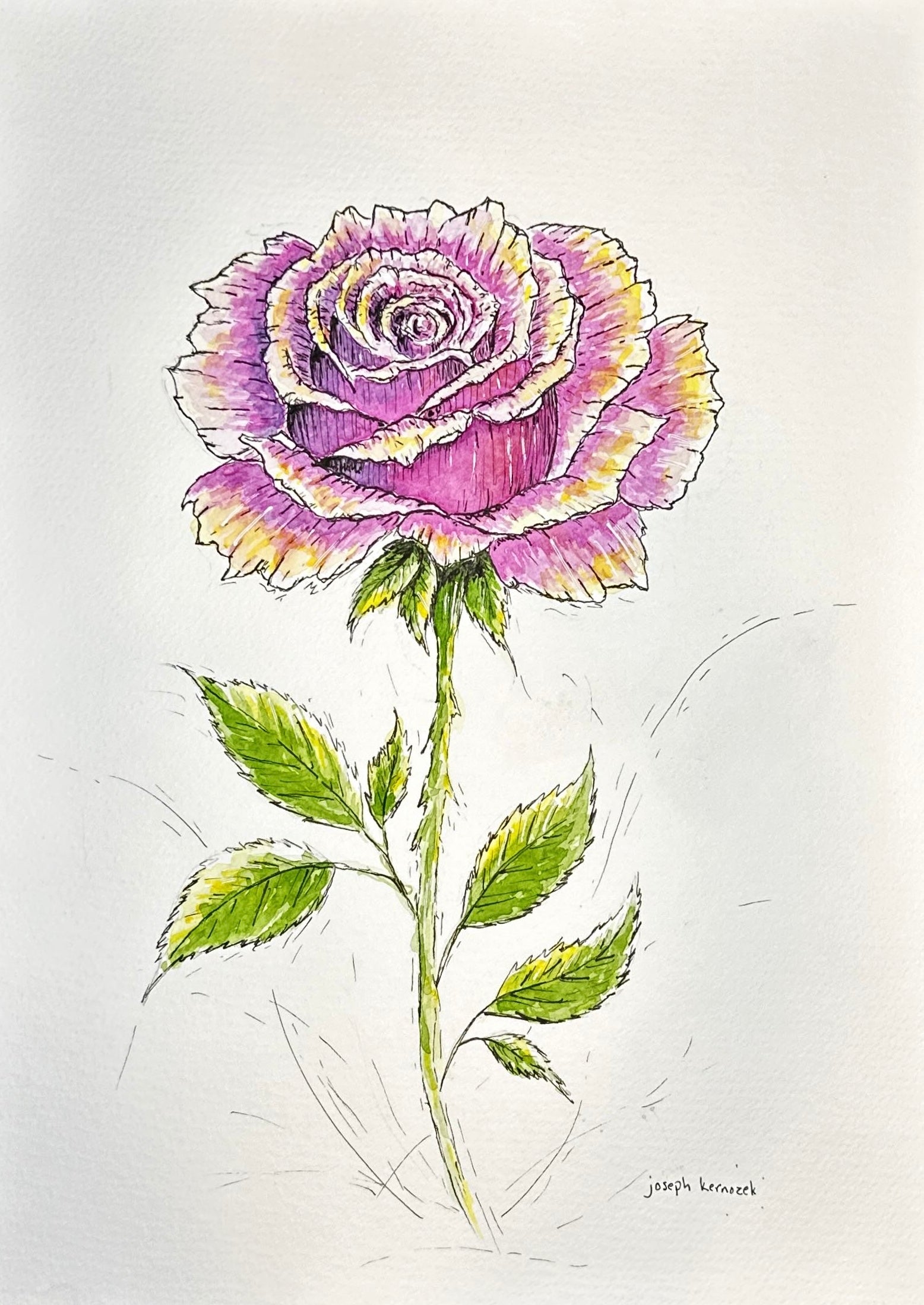 A hand-painted floral piece inspired by quiet moments, natural light, and the beauty of imperfection. Created using professional-grade watercolors and archival ink on 9 x 12" cold-press watercolor paper.